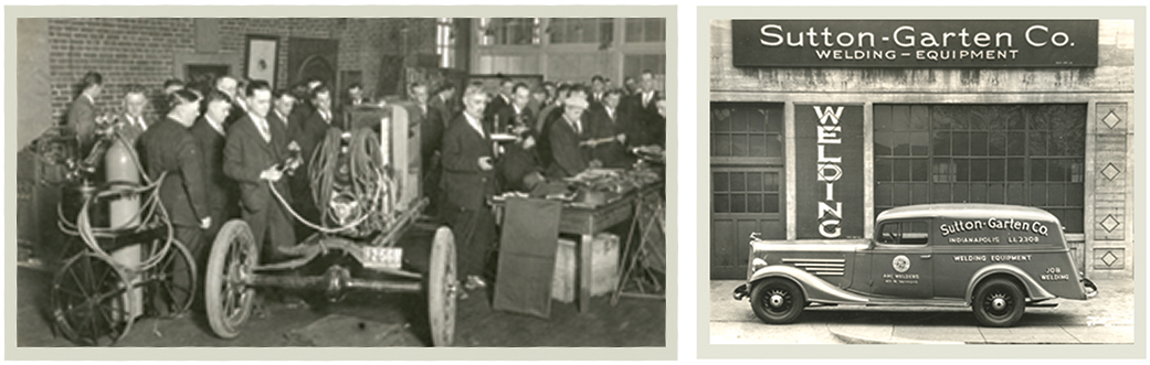 The company expanded its operations to a new building at 401 W. Vermont Street, Indianapolis. The shop area was enlarged and the repair business grew rapidly. It was also a way of introducing the new concept of welding repair to skeptical customers. An early offer to repair the touring Liberty Bell was unfortunately rejected, but many others saw the benefits of welding and ended up purchasing welders for their own operations. Sutton-Garten became a distributor for KG Equipment, an early manyfacturer of gas apparatus that had previously had no representation west of Pennsylvania. Sutton-Garten obtained exclusive rights to the states of Ohio, Kentucky, Illinois, Michigan and Indiana. KG was later purchased by Air Products and Chemicals, and then by Smith Equipment, an ITW Company. During the 1930’s, the supply business suffered due to the Depression, but the repair business continued to be strong. In fact, no one was laid off all through the Depression. By 1936, equipment sales picked up and the supply business grew rapidly. During World War II, the company helped train welders for jobs in the defense industry. By the late 1940’s the shop buiness was only a minor part of the operation, and it was discontinued in 1953.