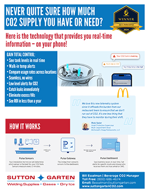 For the safest, most reliable CO2 systems available, Sutton-Garten offers the highest quality alarm and supply monitoring systems available. These systems are 24/7 with real-time reporting on your designated devices.